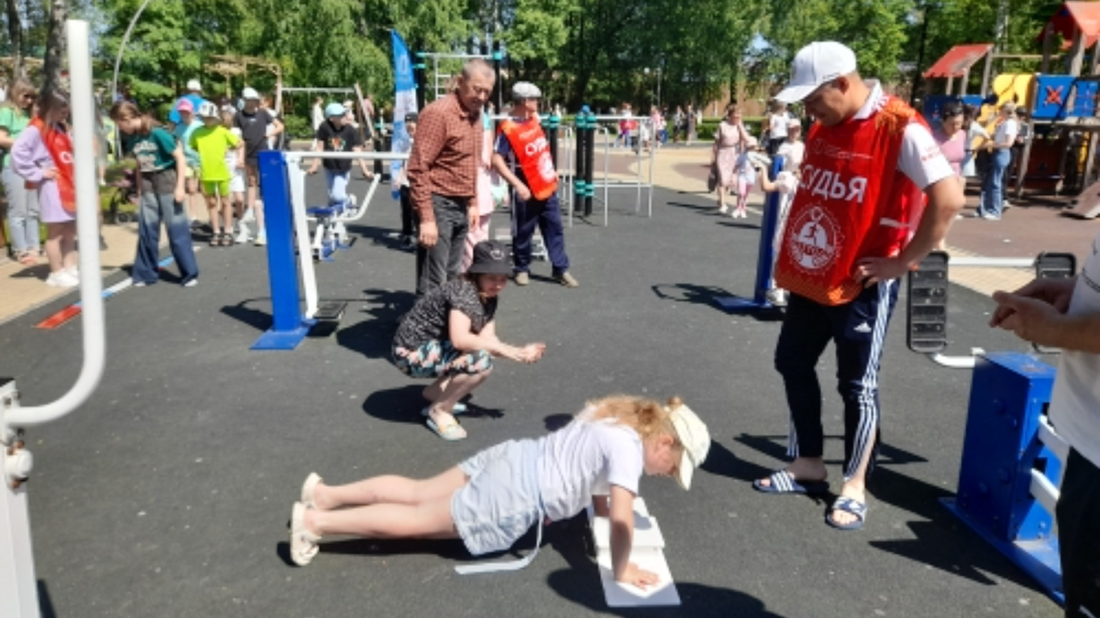 Сегодня в центральном парке прошло мероприятие посвящённое Дню защиты детей на котором работала мобильная площадка ВФСК ГТО. Все желающие смогли попробовать себя в следующих испытаниях прыжок в длину, отжимания от пола, подтягивание на высокой перекладине и прыжке в длину с места.