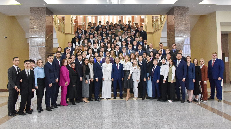 От имени Раиса Республики Татарстан Рустама Минниханова, парламента и Правительства республики вновь избранных молодых парламентариев поприветствовал Председатель Государственного Совета Фарид Мухаметшин.