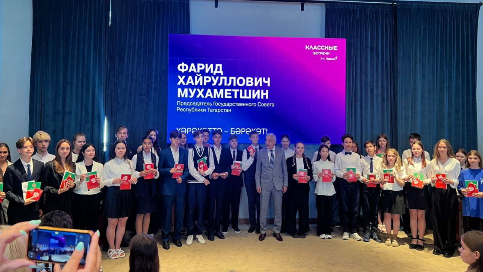 Фарид Мухаметшин поздравил юных татарстанцев с получением паспорта и пожелал им быть дисциплинированными, исполнять федеральные и республиканские законы.