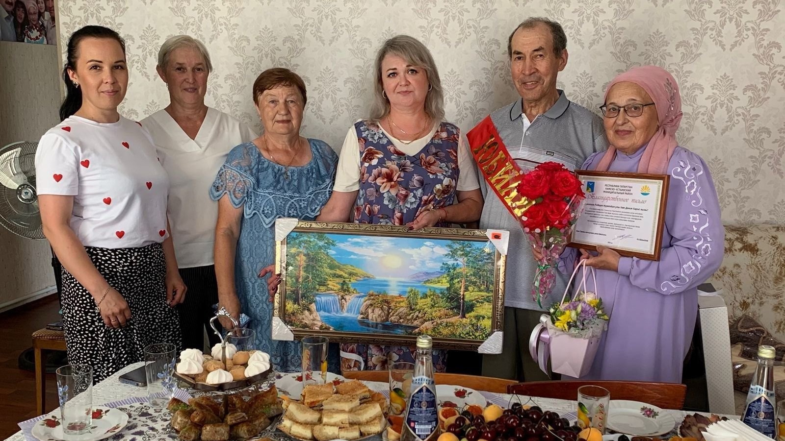 В честь золотого юбилея супругам, в присутствии родных и близких были сказаны теплые слова и пожелания начальником отдела ЗАГС Еленой Халиковой, руководителем Исполнительного комитета пгт. Камское Устье Надеждой Хамзиной и председателем ТОС "Южная околица" Татьяной Музаффаровой.