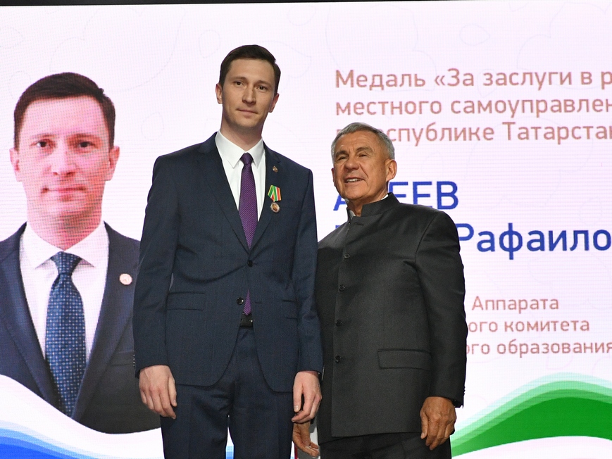 В Казани состоялось торжественное мероприятие, посвященное Дню местного самоуправления в РФ. На церемонии раис Татарстана Рустам Минниханов вручил руководителю аппарата исполкома Казани Булату Алееву медаль «За заслуги в развитии местного самоуправления в РТ». В мероприятии приняли участие государственный советник Татарстана Минтимер Шаймиев, председатель Госсовета РТ Фарид Мухаметшин, мэр Казани Ильсур Метшин и председатель Cовета муниципальных образований РТ Экзам Губайдуллин.«Местные органы отвечают за решение самого широкого круга вопросов, в том числе в сфере образования и воспитания молодежи, межнационального и межконфессионального мира и согласия, ЖКХ, дорожно-транспортного обеспечения, развития экономики, малого и среднего бизнеса, привлечения инвестиций, других задач, связанных с жизнедеятельностью на местах», – сказал раис РТ.