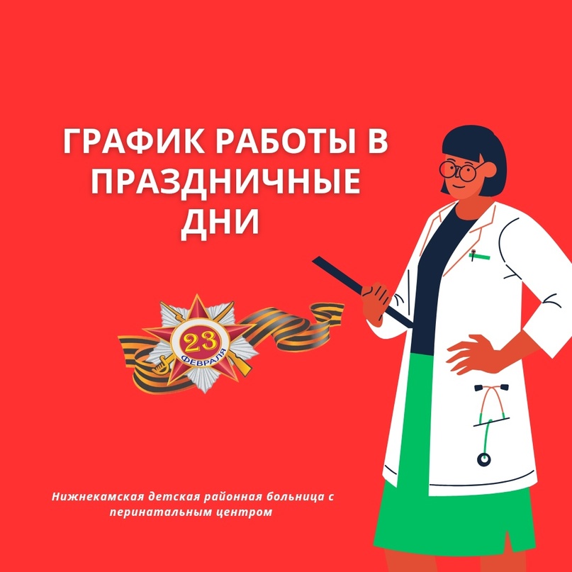 График работы НДРБ с ПЦ 23 февраля 23 февраля - поликлиники не работают.