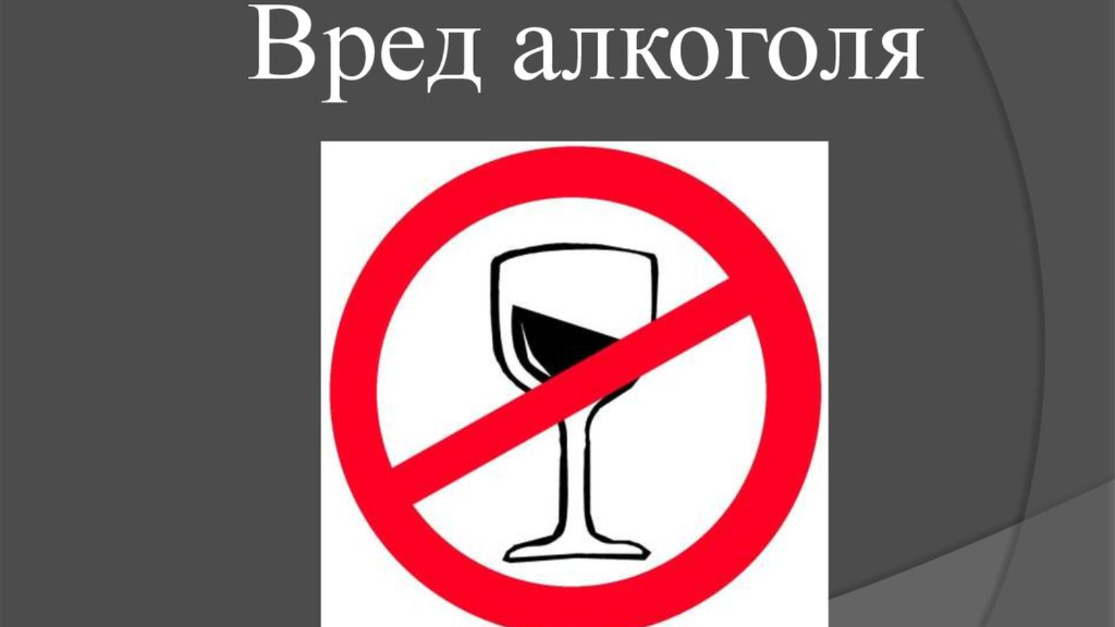 Одним из основных принципов здорового образа жизни является отказ от употребления алкоголя, так как он приводит к ухудшению состояния здоровья, наносит урон общественной жизни: вносит разлад в семьи, активно вмешивается и портит процесс воспитания детей, нарушает трудовые процессы, порождает незаконное и аморальное поведение.